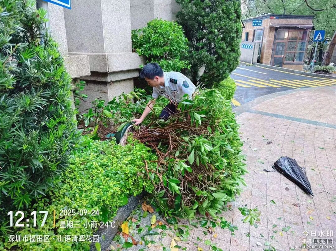 为了保障业户的生命财产安全,减少台风带来的损失,在台风来临时,各分公司高度重视,各项目严阵以待,全面做好台风防御工作与应对工作,全员时刻关注台风动向,齐心协力共同抵御“风王”,致力保障小区安全,共同守护我们的美好家园。