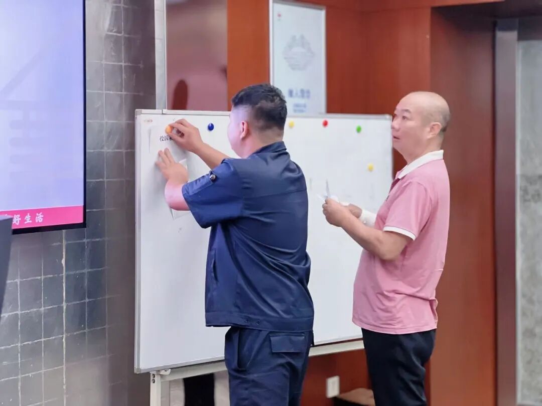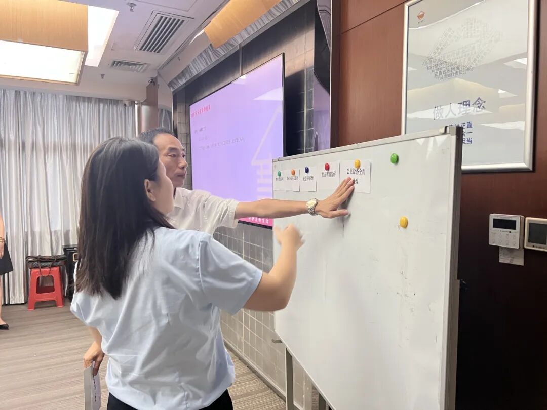为打破传统培训的单向灌输,本次培训现场别出心裁地引入了充满趣味的“线上大转盘”抽签方式。随着屏幕上的转盘旋转,参训者随机“两两成组”,各小组在限定时间内就抽签案例或问题进行探讨,展开了“智慧碰撞”。并通过多米诺骨牌推演,每一个系列效应背后都蕴含着深刻的逻辑解析,引导员工深入理解行为与结果之间的内在联系。经过一番精彩的思维交锋,多个表现突出的小组凭借其正确的解决方案和紧密的团队协作,成功荣获“破窗修复大师”的称号,这一独具匠心的荣誉不仅肯定了参训者的智慧,更极大地提升了大家的参与感与成就感。