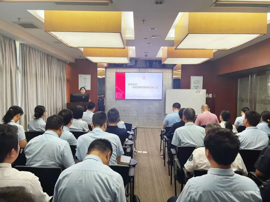为强化精细化管理意识,提升服务品质内核,公司于9月10日、9月26日组织开展了为期两期的《破窗效应:物业管理的防微杜渐之道》主题提升培训,各职能部门及分公司领班级以上管理人员共80余人参与学习。本次培训由物业公司娄总担任主讲,采用“理论讲授+案例推演”的模式展开,为管理团队进行了一次深刻的思想赋能与行动淬炼。通过此次培训学习旨在:聚焦认知重塑,深入解读“破窗效应”理论,物业服务无小事,每一个细节都是维系小区服务品质的关键节点;聚焦行动统一,通过物业服务案例推演,强化了团队对各类“有形”与“无形”问题的敏锐度与即时处理能力;聚焦责任升华,激发了管理人员作为家园“第一守护者”的使命感,凝聚起主动作为、防微杜渐的团队共识。